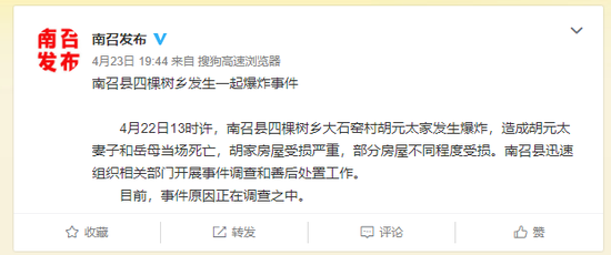 南召縣四棵樹鄉(xiāng)發(fā)生一起爆炸事件