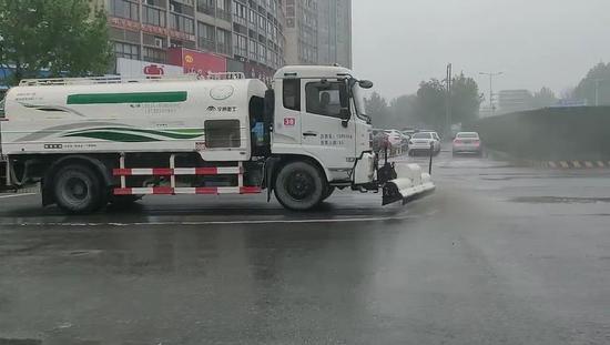 原標題:鄭州灑水車雨天作業,官方回復:清洗縫隙污物,越下雨越要作業