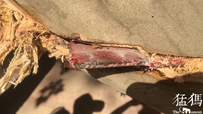 接市民反映后,豐慶路巡防員沿該路段查看發現,園田路由北三環到博卉路約500米的路段當中,共有十多處被車輛掛斷樹枝。其中一些被大型器械“削”斷的樹木枝干中,還留下金屬的殘片深深的嵌在樹干中。