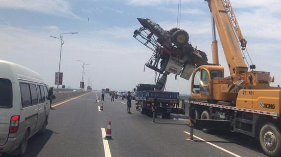 當日上午10時40分,高鐵停運,吊裝、消防車輛準備就緒,開始起吊事故車輛。11時50分,事故車輛起吊完畢,被拖離事故現場。12時35分,事故現場清理完畢,人員全部撤離,交通恢復正常通行。