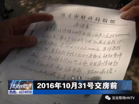 業主向記者展示了一份開發商簽訂的購房承諾書,上面明確規定了交房時間。業主向記者展示了一份開發商簽訂的購房承諾書,上面明確規定了交房時間。