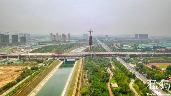 據(jù)悉,該橋梁上跨南水北調(diào)干渠,又橫跨中原路口,是目前國(guó)內(nèi)首座塔、梁、索同步施工的單體斜拉橋,大橋主塔柱高88.485米,施工時(shí)間歷時(shí)8個(gè)月,目前鋼箱梁順利貫通,斜拉索也全部安裝完成。接下來,奧體大橋?qū)⑦M(jìn)行橋面附屬、亮化等施工工作,預(yù)計(jì)今年8月中旬達(dá)到通車條件。
