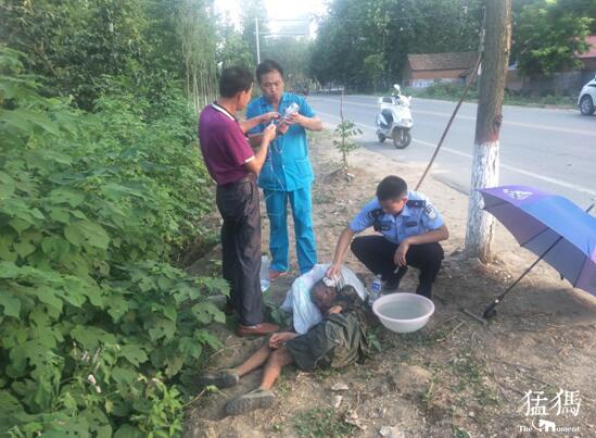 原來,7月22日17時許,正陽縣公安局大林派出所接到110指揮中心指令,稱在大林鎮漫塘村紅綠燈南200米處,有一名老人暈倒在地。接警后,大林派出所民警孫鵬鵬及輔警迅速趕往現場,并撥打了120急救電話。