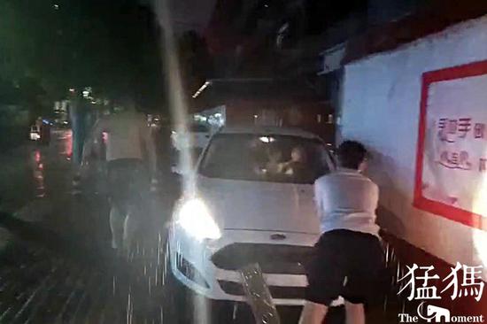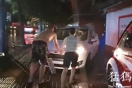 8月1日晚8時許,天正下著大雨,汝河路部分路段積水深達40公分,當一輛行進到汝河路文化宮路的轎車突然排氣管進水熄火拋錨,正當轎車司機發愁之時。附近人社局社區巡防員段凱民和隊友,挽起褲腿,冒著大雨合力將拋錨的汽車推到路邊地勢較高的位置,減輕了道路的擁堵。