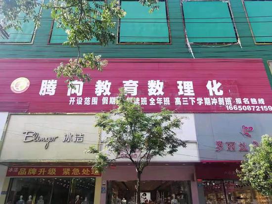 從一個狹長的胡同里,記者看到不斷有高中生模樣的學生從入口進入。“騰向教育數理化”位于整座建筑的三樓,根據目測,記者發現該教育機構有十幾間教室,每個班級有40~50人。一名該縣一高的學生介紹:“這個培訓機構已經有一段時間了,是個暑假補習班,班級里的大部分學生都在(這里補習)”,記者問其收費情況時,該同學說“都是父母交的,自己不清楚。”