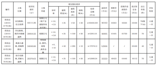 其中,鄭政出〔2019〕67 號(網)地塊位于金寶路南、經五街西,土地面積44111.96平方米(折合約66.17畝),土地用途為城鎮住宅(地下交通服務場站用地),起拍價46163萬元,熔斷價69363萬元,投資總額不低于90496.929萬元。