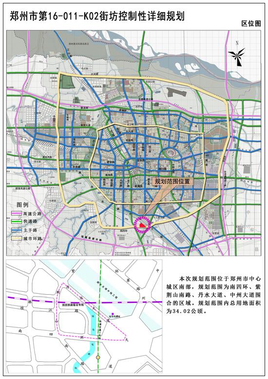 大河財立方消息 8月14日,鄭州市自然資源和規劃局公示了一則控制性詳細規劃,規劃范圍位于鄭州市中心南部,為紫荊山南路東、南四環北、丹水大道南、中州大道圍合的區域,規劃范圍內總用地面積為34.02公頃(510.3畝)。