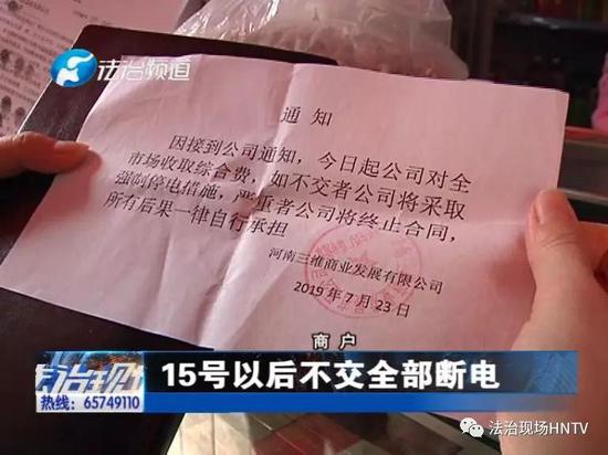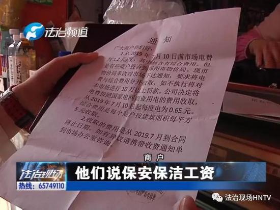 電費降下來之后,今年7月份,商戶們收到了市場承包方發來的書面通知。