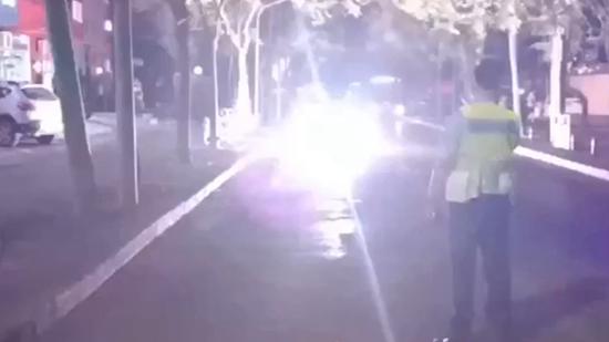 據附近一名保安人員稱,橫穿馬路的這根斷頭電線,一大早就在馬路上了,最近幾天該路段正在進行線纜入地工作,估計是該電線橫穿馬路時,不慎被大車掛斷落地的。起初,大家以為是一根廢線,橫在地面上被來往車輛軋了一天,沒想到夜間突然開始打火,所幸并無人員被電傷。