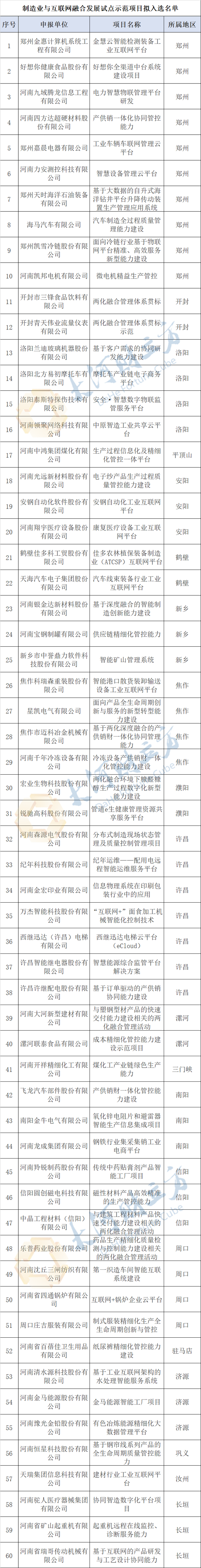 原標題:60個項目擬入選河南制造業與互聯網融合發展試點 | 附名單