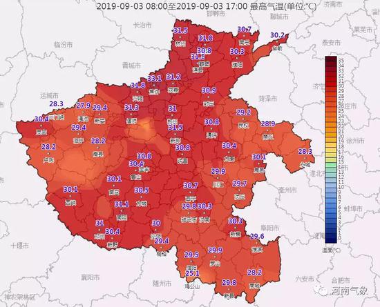 最高溫度:西部、東南部27到29度;其它地區29到31度。