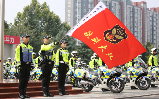 儀式上,鄭州交警支隊支隊長竇立勇向鐵騎大隊授旗,并號召全體民警在市委市政府和市局黨委的堅強領導下,全市交警上下同心,履行好時代賦予鄭州交警鐵騎的使命任務,打造叫得響的鄭州交警鐵騎品牌。