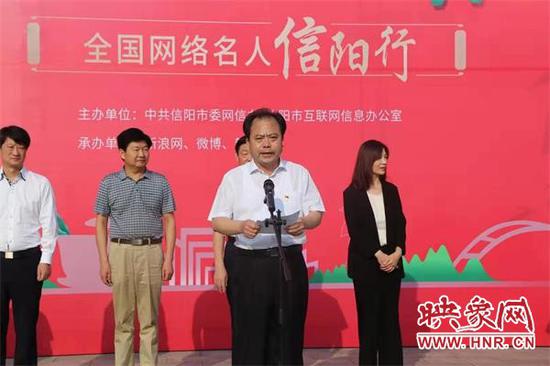 曹新博在啟動儀式上發表講話。他說,當今時代,互聯網的快速發展深刻改變著社會結構、社會關系,移動應用、社交媒體已經成為主要信息入口,網絡名人在輿論引領與正能量傳播中正發揮著不可忽視的積極作用。舉辦這次主題宣傳活動,借助網絡名人的影響力和新媒體的力量、為實現中原更出彩和信陽高質量發展營造良好網上輿論環境。