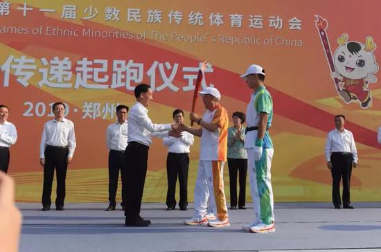 今天上午,第十一屆全國少數民族傳統體育運動會“火炬傳遞”活動在鄭州市舉行!