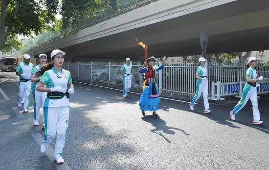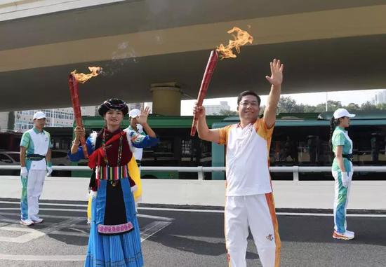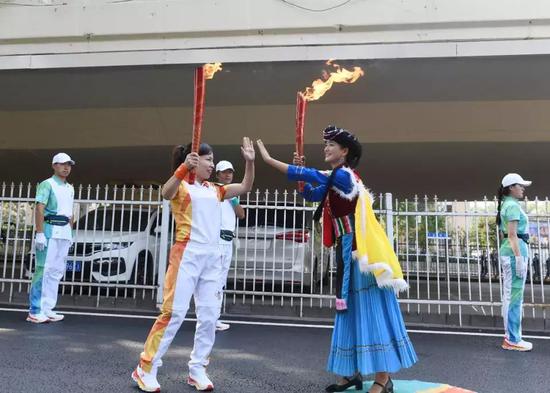 火炬手共123棒,其中56個民族代表與各界火炬手交替傳遞,每棒火炬手傳遞距離約為70米。寓意56個民族像石榴籽一樣緊密團結在黨中央周圍,共祝新中國成立70華誕。攜手奮進新時代,同心共筑中國夢。