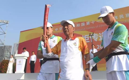 上午8時16分,隨著組委會副主席、國家民委副主任郭衛平宣布中華人民共和國第十一屆少數民族傳統體育運動會實地火炬傳遞開始,第一棒火炬手、89歲的老戰士張利修高擎火炬,從起點緩步出發,本次運動會的實地火炬傳遞活動正式開始。