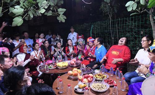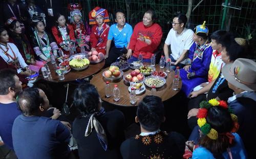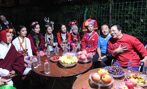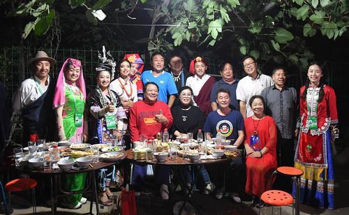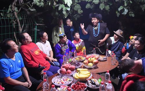 從傍晚6點起,一名名身穿民族盛裝的姑娘、小伙們陸續地來了,大家圍坐在桌子旁邊,和高新海以及鄰居們聊著家常。