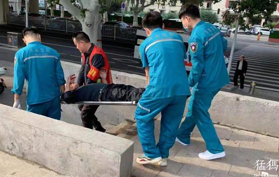 隊員們在河道管理員以及熱心市民的合力下降落水男子救上岸后,并撥打120求助,并將男子抬到急救車送至醫院進行救治。