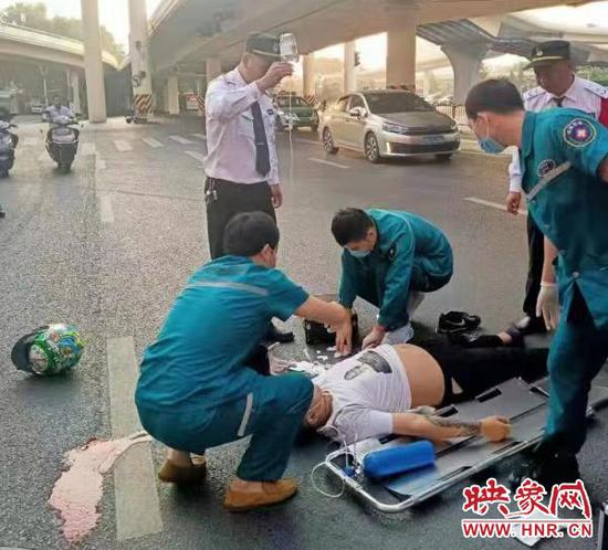 10月3日7時許,金水區大石橋巡防隊員王偉、陰國嶺、候金武、巡邏至金水路眼鏡城附近時,接到一群眾報警稱:有人駕駛摩托車從高架交橋上墜落,情況危急。巡防隊員聽到位置正好在南陽路與金水路交叉口西北角,就是巡防隊員們所在位置的馬路對面不遠處。仔細向對面查看,遠遠可以看到對面圍了一群人。