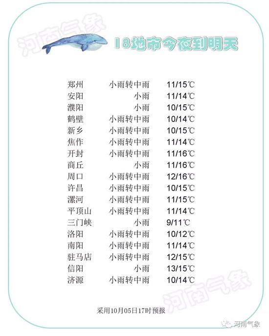 今天白天,全省陰天有小雨,淮河以北大部分地區有中雨。