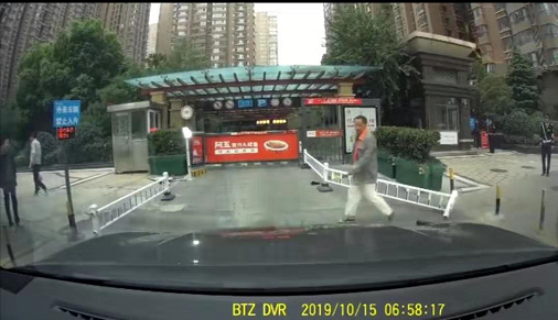 四中隊警組人員接到警情后立馬到達現場,正在了解現場情況并記下涉事車輛車牌號準備進行下一步工作時,7:16分突然發現涉事車輛又回到了小區地下停車場。