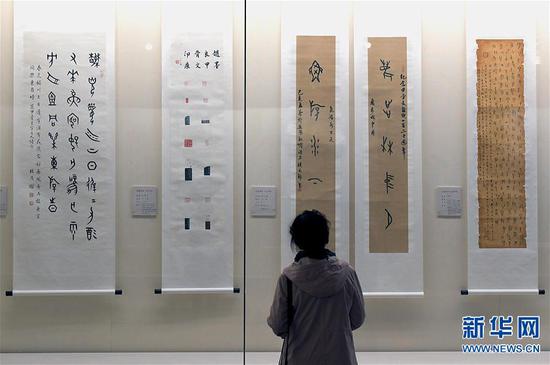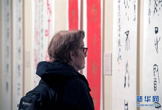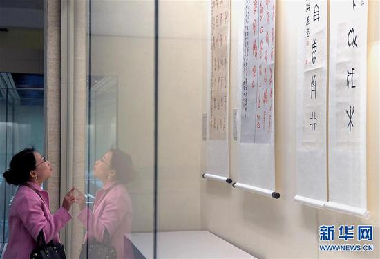 10月18日,參觀者在參觀展出的作品。新華社記者 李安 攝