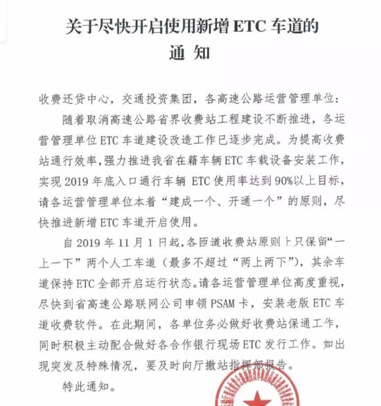 記者從省撤銷省界站指揮部工作人員處了解到,文件屬實,這一通知發(fā)出的大背景則是取消省界收費站。