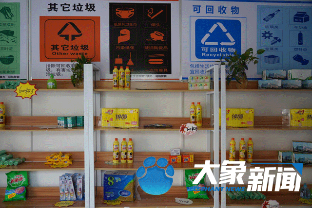 垃圾分類投放點旁邊就是一間垃圾分類積分兌換超市,超市的貨架上擺放著洗衣液、肥皂、洗潔精等比較常用的家庭廚衛用品,在這個超市里,所有的東西都得用積分來兌換,王阿姨走進來后,用600積分兌換了一瓶洗潔精:“我第一次來兌換,平時的紙箱和其他垃圾,扔了也就扔了,這換成積分的話,還能兌東西,多方便呀。”說完,王阿姨向我們展示了她的積分,記者看到,兌換完一瓶洗潔精,王阿姨的手機賬號里還剩下4097分。