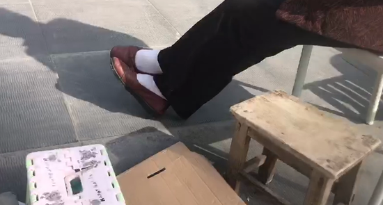 鄭州一藥房搞活動免費送雞蛋。大爺大媽要排隊到下午五點,每人才能領5個雞蛋。中午時分,去吃飯的大爺大媽用石頭、空酒盒、磚頭占位置。