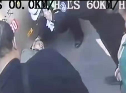 原標題:老人過馬路摔倒,女警摘警帽墊在老人頭下