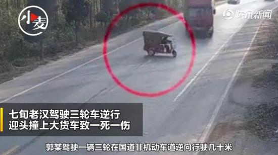 原標題:七旬老人騎三輪車逆行撞上大貨車致一死一傷,監控拍下全過程