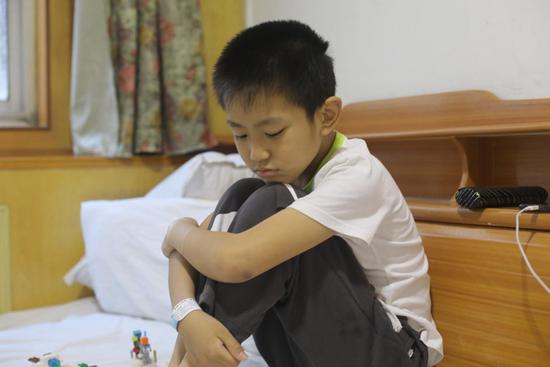 這兩年由于忙工作張永博對孩子的陪伴太少,看著躺在病床上的小伊健,一家人心里百感交集,一個才10歲的孩子遭受這樣的苦痛是誰都不愿意看到的。從這以后小伊健踏上了痛苦而又漫長的治療之路,每天輸血打吊瓶維持生命。由于血小板太低,牙齦出血怎么都止不住,皮膚下面出血,身上出現紫斑。