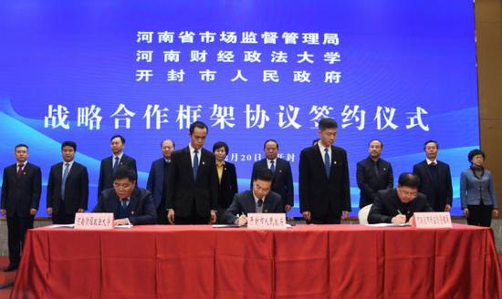 近年來,隨著商事制度改革深入推進(jìn),市場活力得到充分激發(fā),與市場監(jiān)管相關(guān)的知識產(chǎn)權(quán)保護(hù)、食品藥品醫(yī)療器械檢驗(yàn)、特種設(shè)備管理等專業(yè)技術(shù)人才需求持續(xù)擴(kuò)大。12月20日,猛犸新聞·東方今報(bào)記者從河南省市場監(jiān)管局獲悉,該局于20日下午和開封市政府、河南財(cái)經(jīng)政法大學(xué)簽署三方戰(zhàn)略合作協(xié)議,三家強(qiáng)強(qiáng)聯(lián)合、資源共享,攜手發(fā)展高等職業(yè)教育,致力于打造打造河南產(chǎn)學(xué)研一體的應(yīng)用技術(shù)人才培養(yǎng)、學(xué)科研究和社會服務(wù)高地。