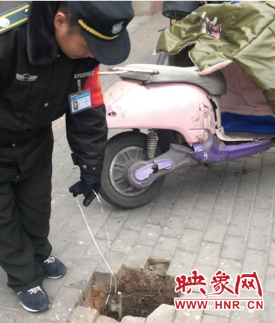 23日上午9時許,中原區巡防隊員閆紅偉、康永東、閆保富巡邏到汝河路文化宮路口附近,巡防隊員接到市民劉女士求助,稱路口西南角處公共衛生間門前的3根水泥線桿一夜間被人拔走了,人行道邊留下三四個深坑沒人回填,路邊這么多行人走來走去的,實在太危險了。巡防隊員跟隨劉女士趕到路口對面的現場,的確看到公廁門前遺留下的3個線桿坑未及時回填,路邊張著嘴非常不安全。巡防隊員在其中一個線桿坑里還發現一個鋼絲拉線,安全隱患很大。沿路口向西約50米處,在街角公園北門出入口處的人行道邊,同樣有一個線桿深坑,也是非常危險地張著大口。