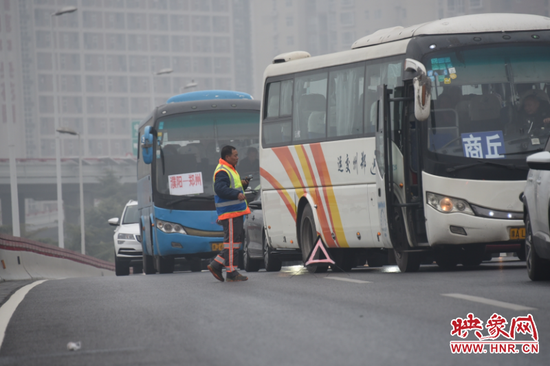 映象網訊(記者 邱延波 文/圖)12月24日早上,鄭州市中州大道金水立交發生多車相撞事故,映象網以《中州大道金水立交橋40多輛車相撞 疑因路面灑落的油污帶導致》為題,進行了報道。隨后,有媒體報道稱,事故原因是一輛B3遺灑潤滑油所致。映象網聯系公交公司多名人員,B3負責人對此予以否認。