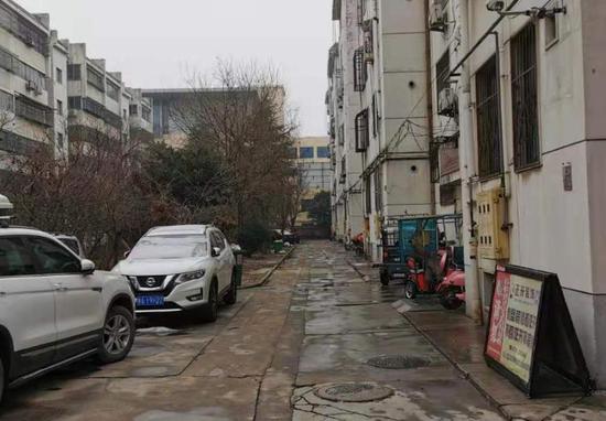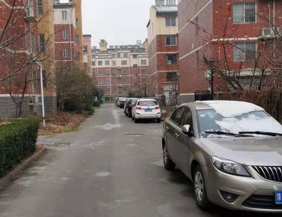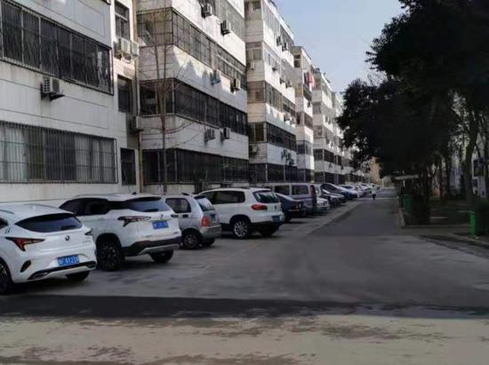 小區大門安裝著門禁防護欄,趁著業主刷卡的間隙,記者進到小區,只見從北至南并排五座六層高樓,北側兩樓間南北、東西方向各停放著一輛轎車,堵住了道路;中間樓下也頭西尾東停放著車輛,即便沒有車輛,樓下水泥路面僅容一輛小車通過,掉個頭都難;而去往最南側的樓房,必須穿過緊鄰其間的樓下一層過道,過道內右側停放著幾輛電瓶車;最南側樓房下水泥路面也逼仄的厲害,容不下消防車輛通過,路左側是寬敞的綠化帶,長著高大粗壯的樹木和綠植。