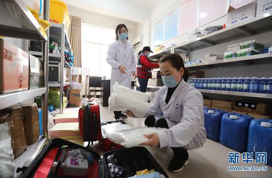 2月26日,返回單位后,崔俊霞和同事填充防護(hù)物資,以備隨時使用。