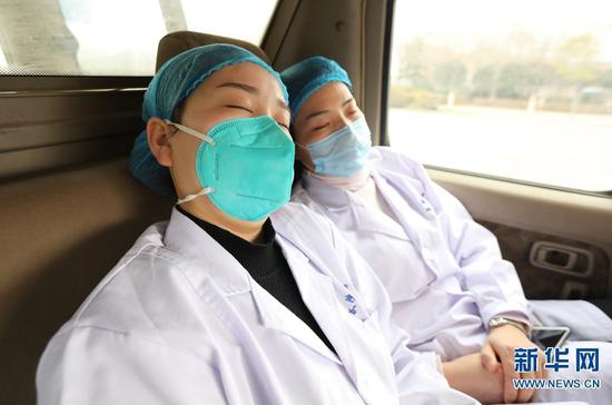2月26日,任務(wù)完成后,崔俊霞(左)和同事田玲俐在回單位的路上抓緊休息。