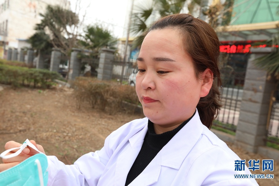 2月26日,返回單位后,崔俊霞取下口罩,臉上勒痕明顯。
