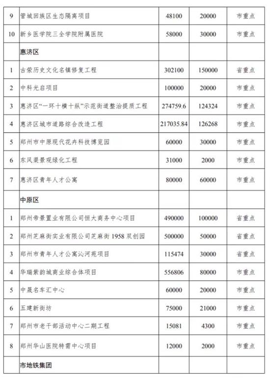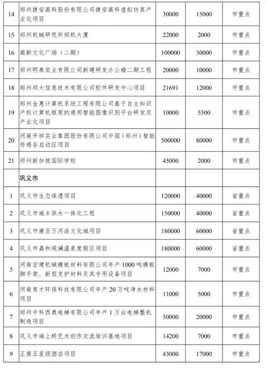 根據(jù)《通知》,2020年度在鄭省、市重點建設項目912個(打捆693個),總投資2.11萬億元,年度計劃投資4607億元;全年計劃開工項目210個、竣工項目101個、續(xù)建項目537個、前期項目64個。