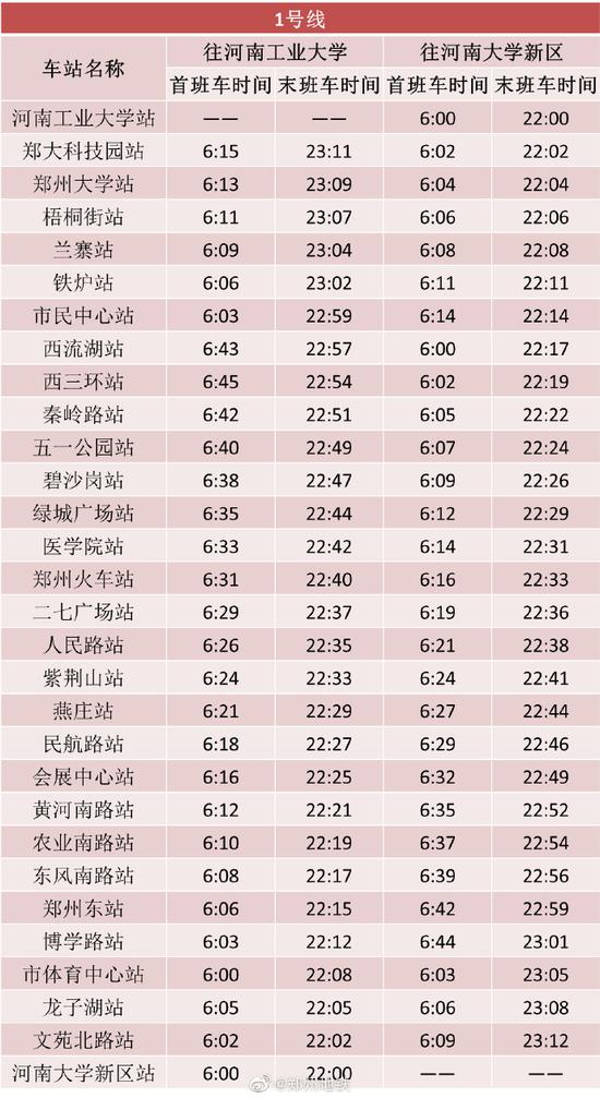 結合復工復產后逐步回升的客流情況,在嚴格做好疫情防控工作前提下,鄭州地鐵自3月9日起將調整全線網行車間隔。1號線、2號線、5號線行車間隔壓縮至高峰期8分鐘以內,城郊線行車間隔壓縮至高峰期16分鐘以內,14號線一期暫不恢復運營。線網已開通車站首末班車時刻表請戳↓