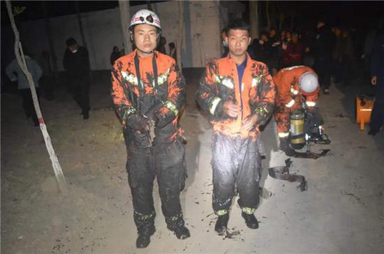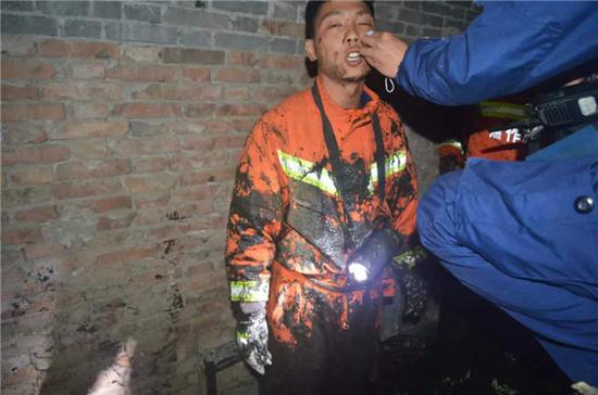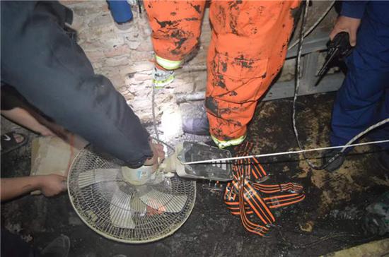 但由于池口較窄,救援人員背負空氣呼吸器無法進入。隨后,現場救援人員借助風扇往池內送風,增進空氣流通。