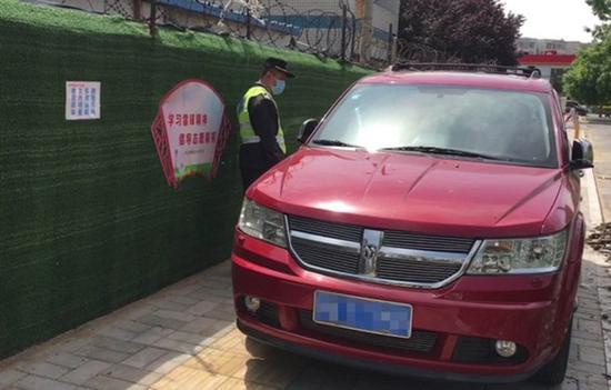 當(dāng)日上午,巡防員彭小利和隊友前來查看發(fā)現(xiàn),占壓在人行道盲道上停靠的該輛越野車將本就狹窄的通道幾乎完全占去,而車窗前后,車主并沒有留下挪車電話,該車影響路人通行不說,最令人難以忍受的是不時會發(fā)出急促刺耳的鳴笛聲。