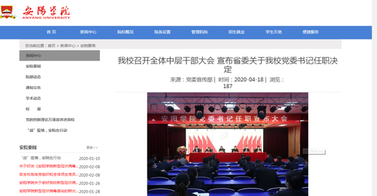 會上,馮軒友處長宣讀了省委關(guān)于學(xué)校黨委書記任職的決定:劉根成同志任安陽學(xué)院黨委書記。