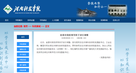 省委組織部對學(xué)校領(lǐng)導(dǎo)班子作出調(diào)整