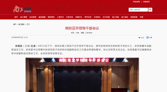 召開校級領(lǐng)導(dǎo)班子調(diào)整情況通報(bào)會