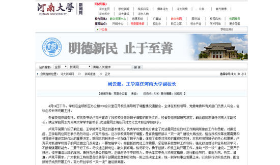 經(jīng)省委組織部研究決定,羅永松同志調(diào)任南陽師范學(xué)院副校長。闞云超同志調(diào)任河南大學(xué)副校長。