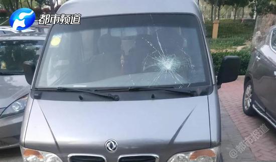 前擋風玻璃也被砸裂