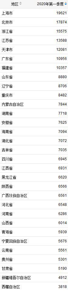 (31省份一季度居民人均可支配收入。來(lái)自國(guó)家統(tǒng)計(jì)局)