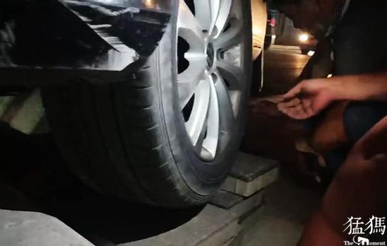 事發后,車主先是找來千斤頂和磚塊墊在前輪下,試圖通過倒車脫身失敗。隨后,建設路幾名巡防員和群眾趕來,嘗試合力將車抬下,無奈車身太重也只好作罷,最后只得求助救援車輛將懸空的轎車托了下來。
